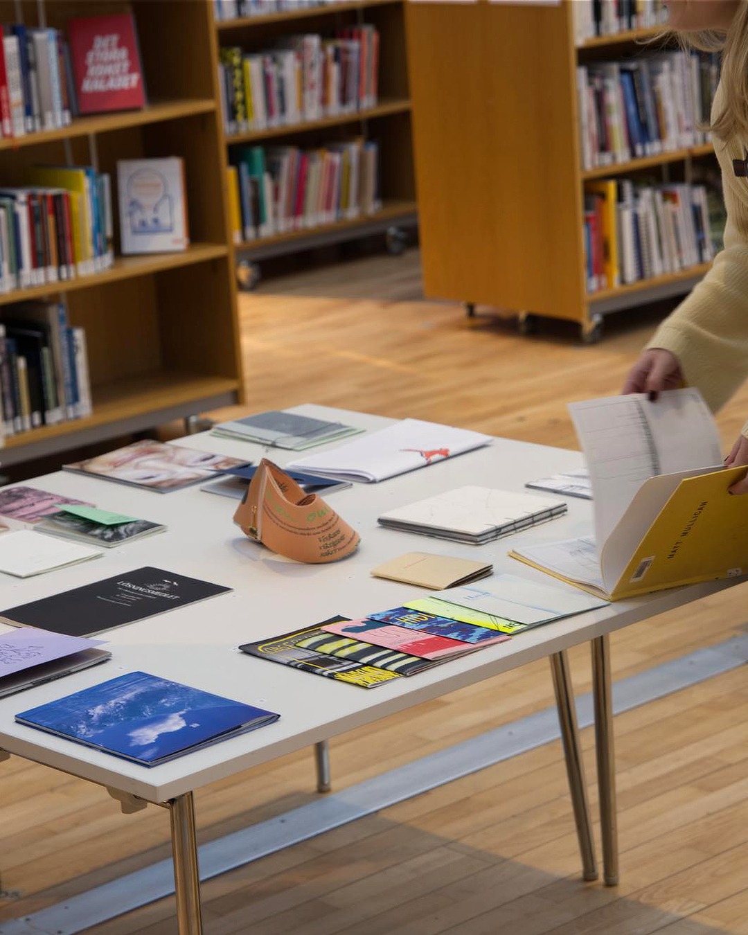 The exhibition is spread throughout the shelves of Lagerhusets Bibliotek, a public library in Gothenburg and runs until April 10